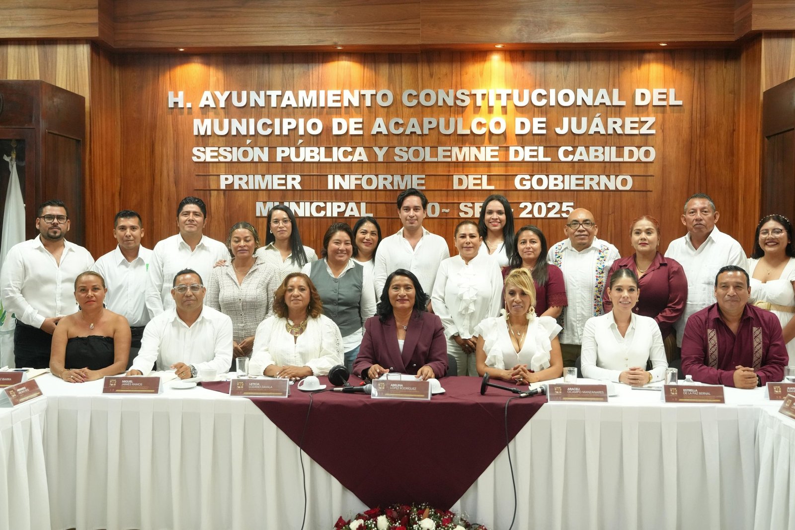 En sesión pública y solemne en la sala de cabildo, la presidenta municipal de Acapulco, Abelina López Rodríguez, presentó su primer informe de gobierno correspondiente a su segundo período como alcaldesa, en el que destacó avances en materia financiera, de obra pública, seguridad, turismo y combate a la corrupción.