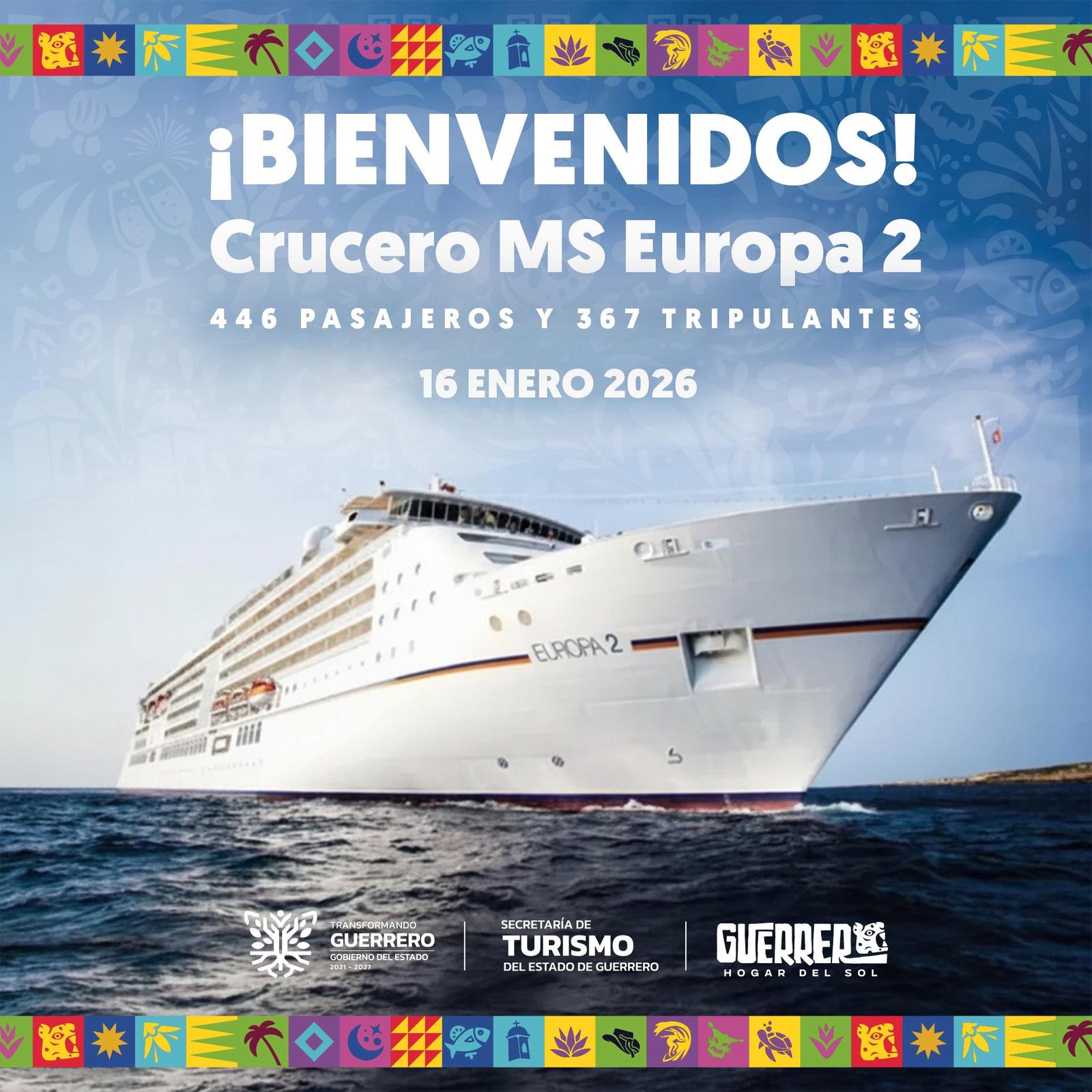 El crucero MS Europa 2 arribó este viernes al puerto de Acapulco con un total de 813 personas entre pasajeros y tripulación, convirtiéndose en el sexto crucero de la temporada y el primero del año en llegar a este destino turístico.