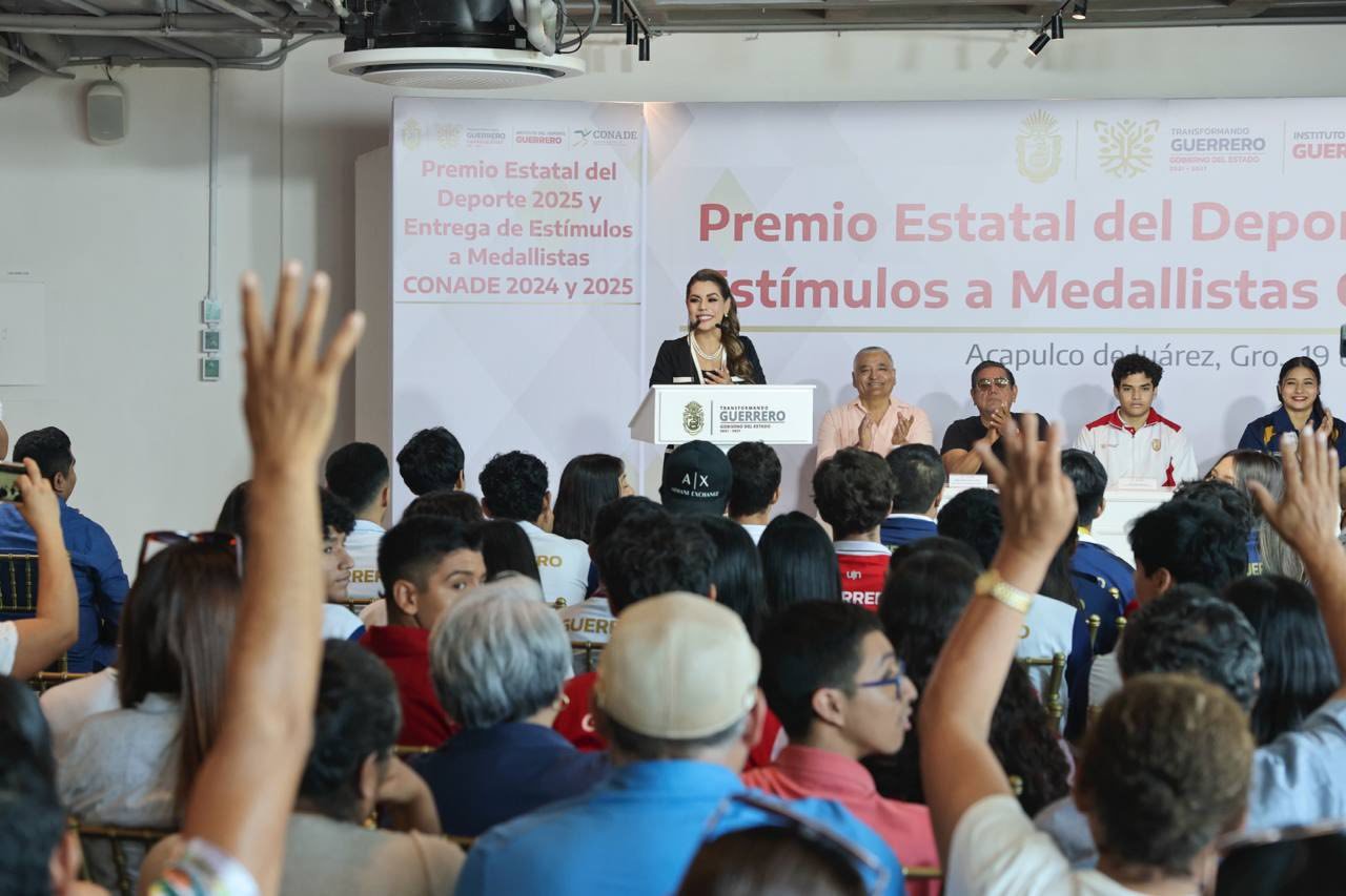 Durante la ceremonia, realizada en la zona Dorada de Acapulco, la mandataria estatal destacó que este galardón honra a lo más destacado del deporte guerrerense y refrenda el compromiso de su administración con las y los atletas que participaron en la Olimpiada Nacional, los Juegos Nacionales Populares, los Juegos Nacionales Indígenas y la Paraolimpiada. Señaló que, en el periodo 2024–2025, Guerrero obtuvo un total de 49 medallas: 23 de oro, 14 de plata y 12 de bronce, resultado del esfuerzo y dedicación de 60 jóvenes deportistas.