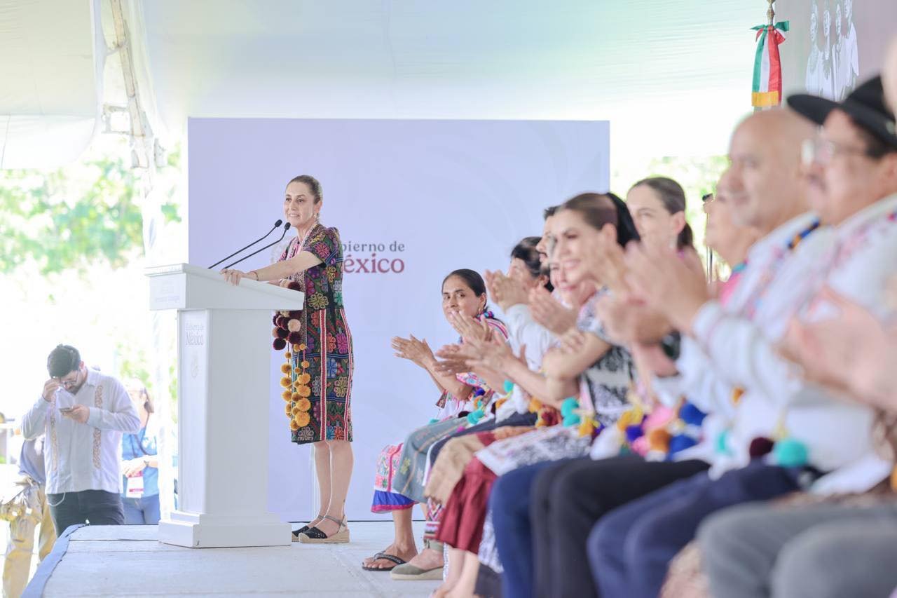 Claudia Sheinbaum Pardo aprovechó para señalar que en “este 2025 es el Año de la Mujer Indígena, donde se les reconoce su lengua, usos, costumbres e identidad. Estamos otorgando créditos a la palabra para que mejoren sus condiciones de vida y continúen tejiendo sus obras de arte”.